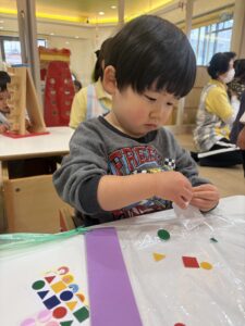 こんにちは! 都島園、保育士の庄司です。 お正月遊びとして、たこあげをしました! シールをペタペタして自分のたこを作り… 広い公園に行って走り回ってたこあげをしました! 楽しくお正月遊びをしました!