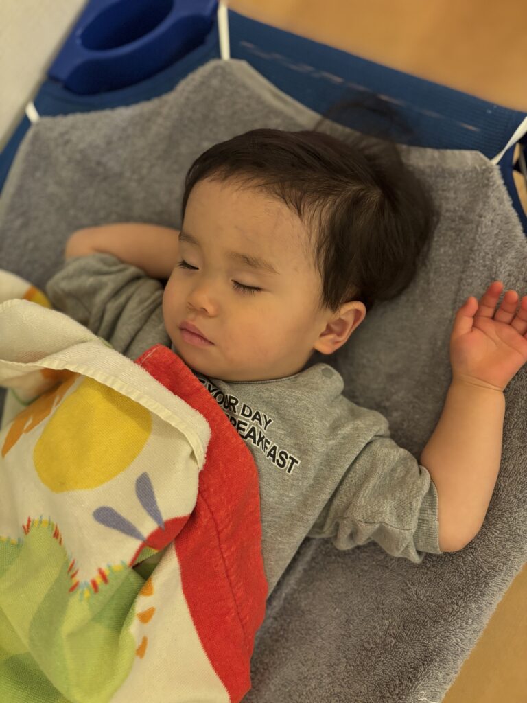 今日も子ども達はぐっすり気持ちよさそうにお昼寝をしていました😴