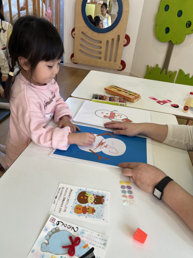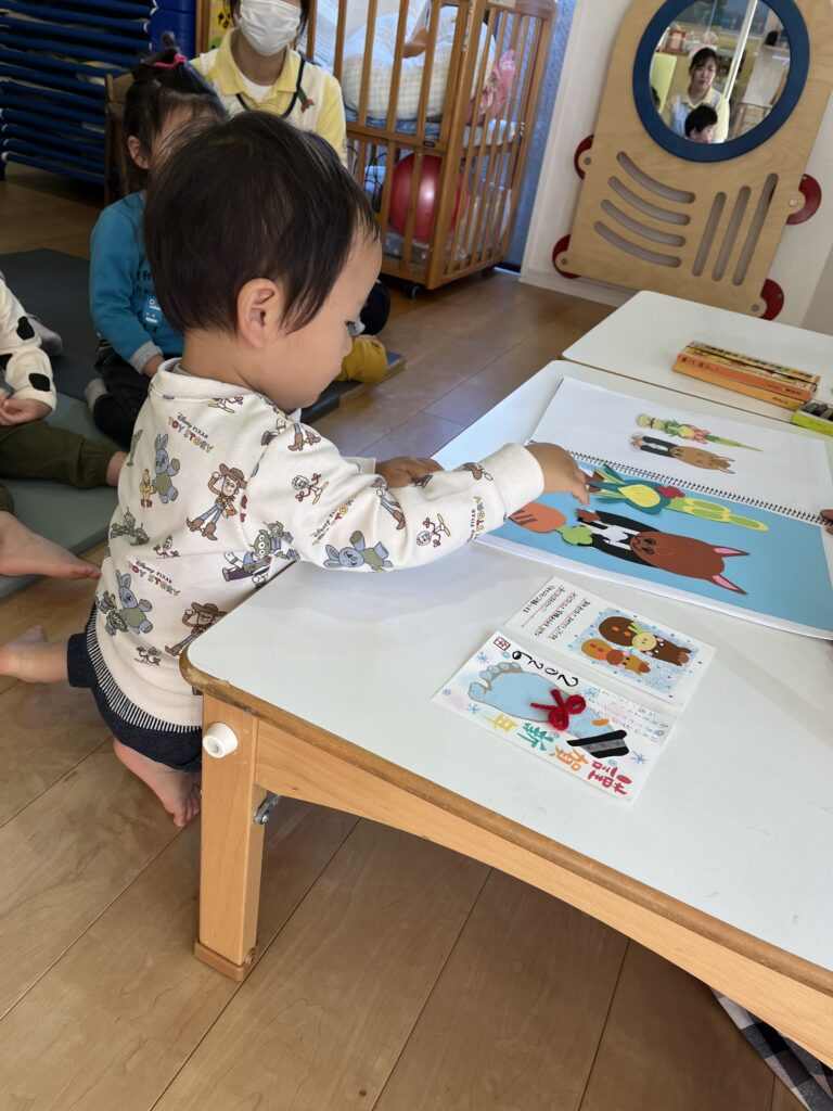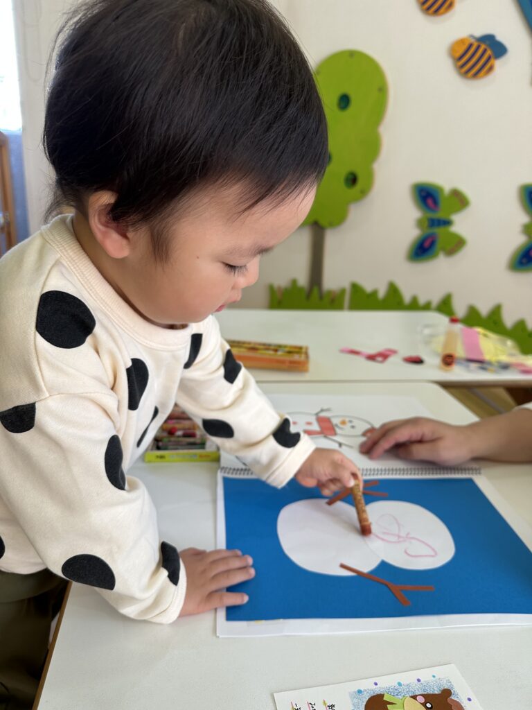 1歳のお友達には、馬のイラストを見ながら、顔を描いてもらったり🖍️