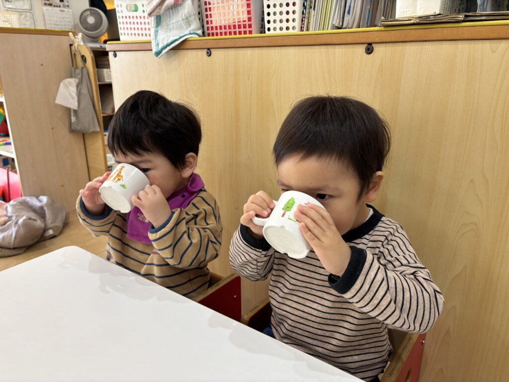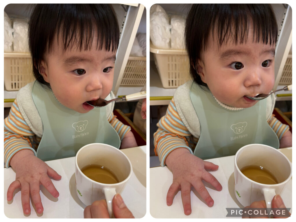ひよこ組さんはスプーンで上手にお茶を飲んでいましたよ!☺️