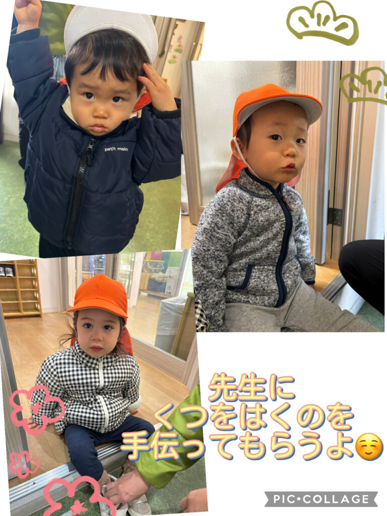 そして、お友達と仲良く隣に座って靴をはいたら玄関で「いってきまーす!」と手を振ってくれます😌♪