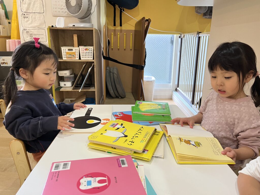 出した絵本を読み終わったら元の場所に戻すことも約束していたので、「ここやったかなぁ」と言いながら片づける姿もありましたよ