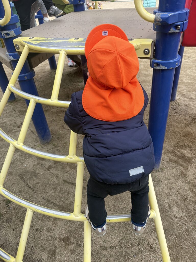 滑り台でも、階段からのぼるのではなく…