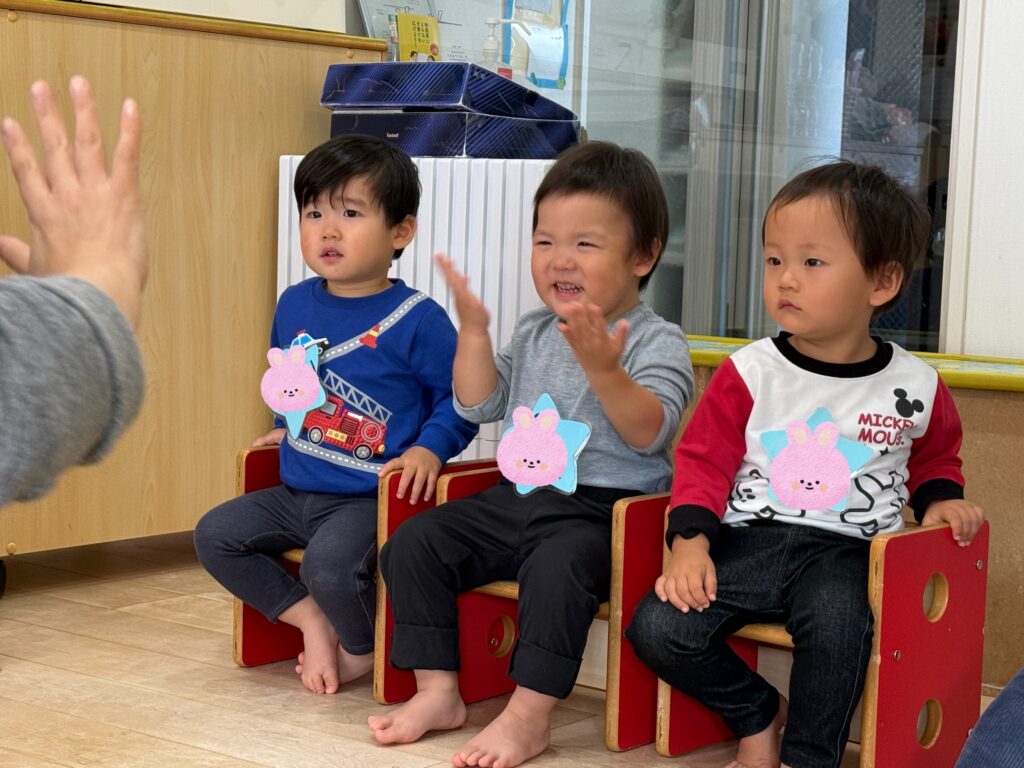 1歳児クラスのうさぎ組さんの英語の時間です🌟