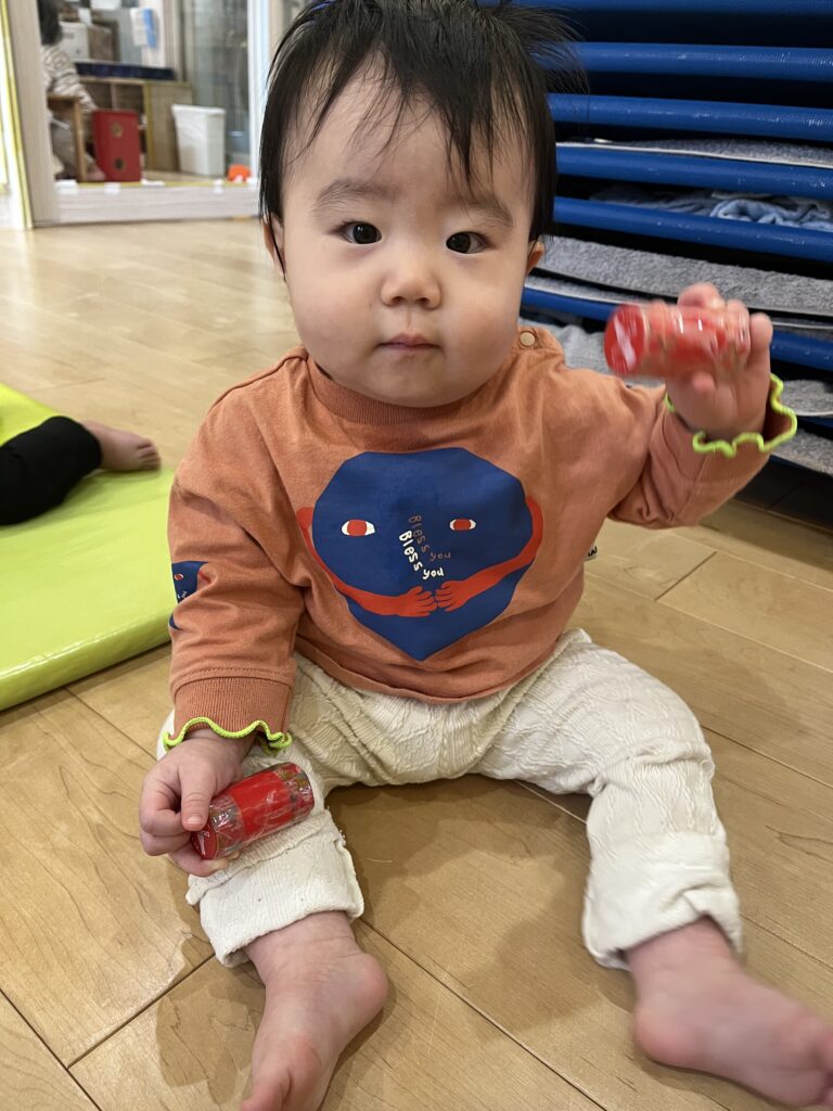 今月から新しく入ったお友達は音楽に合わせて、マラカスを振ったり