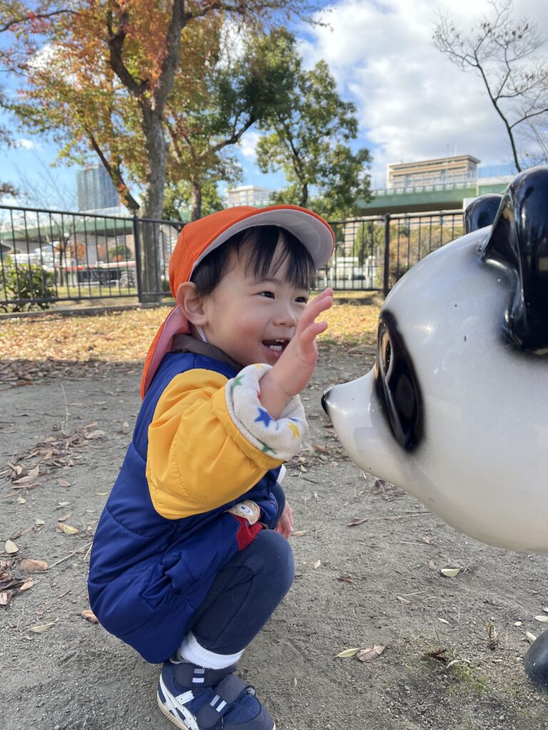 パンダ🐼を見つけて、頭をなでなでして触れ合ってうれしそうでした🤭