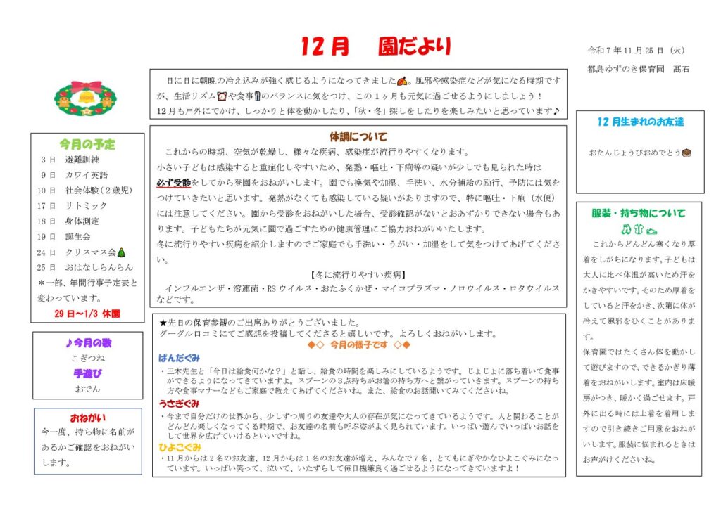 12月園だより🎅🎄